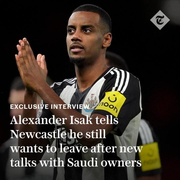 直播吧08月26日讯 电讯报独家:伊萨克仍想离队&重申希望去利物浦,将继续罢训...