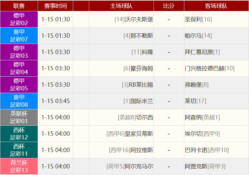 其他赛事比分: